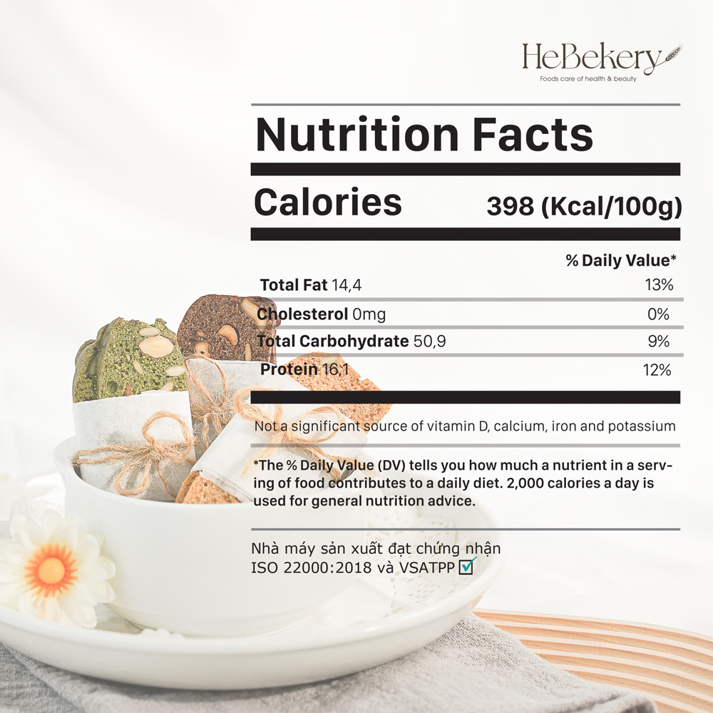 Bánh Biscotti Nguyên Cám của HeBekery được làm ra với công thức phù hợp với khẩu vị của các chị em Việt, độ giòn vừa phải, không chất béo. Đặc biệt hơn nữa là với các thành phần lành mạnh đúng với tiêu chí ăn ngon, ăn khoẻ, ăn đẹp: