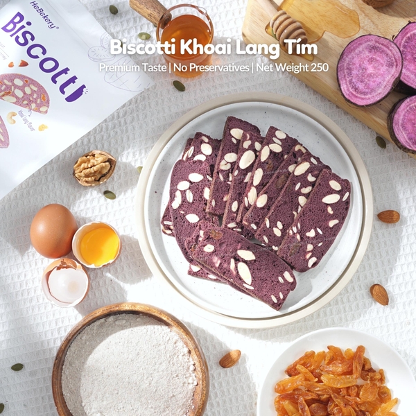 Theo đúng với như tên gọi Biscotti - Bánh được nướng 2 lần, ở nhiệt độ vừa đủ, HeBekery chúng mình sử dụng Bột Mì Nguyên Cám và nướng cùng Mật Ong Thiên Nhiên, đặc biệt hoàn toàn không sử dụng đường kính trắng thông thường để đảm bảo chuẩn Healthy và Eat Clean, và cùng với công thức nướng bánh Handmade, HeBekery tự tin làm ra những lát bánh giòn rụm khi thể đến tay các bạn.
