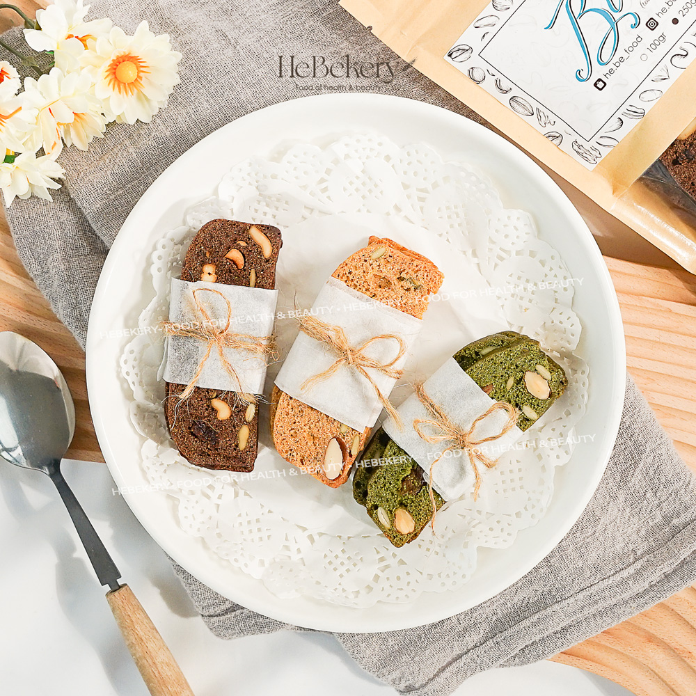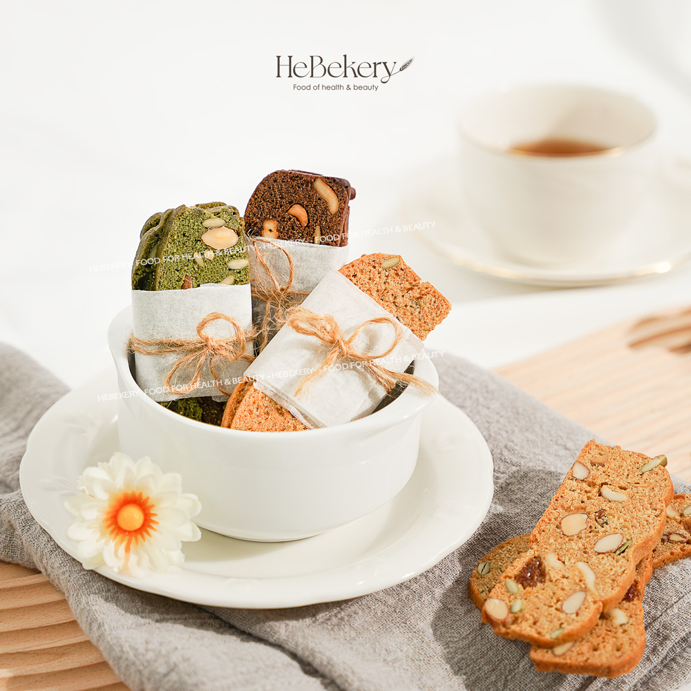 Biscotti HeBekery được làm từ BỘT MÌ NGUYÊN CÁM nhập khẩu và MẬT ONG THIÊN NHIÊN để đảm bảo chuẩn Healthy và Eat Clean, và cùng với công thức nướng bánh Handmade, HeBekery tự tin làm ra những lát bánh giòn nhất có thể đến tay các Nàng